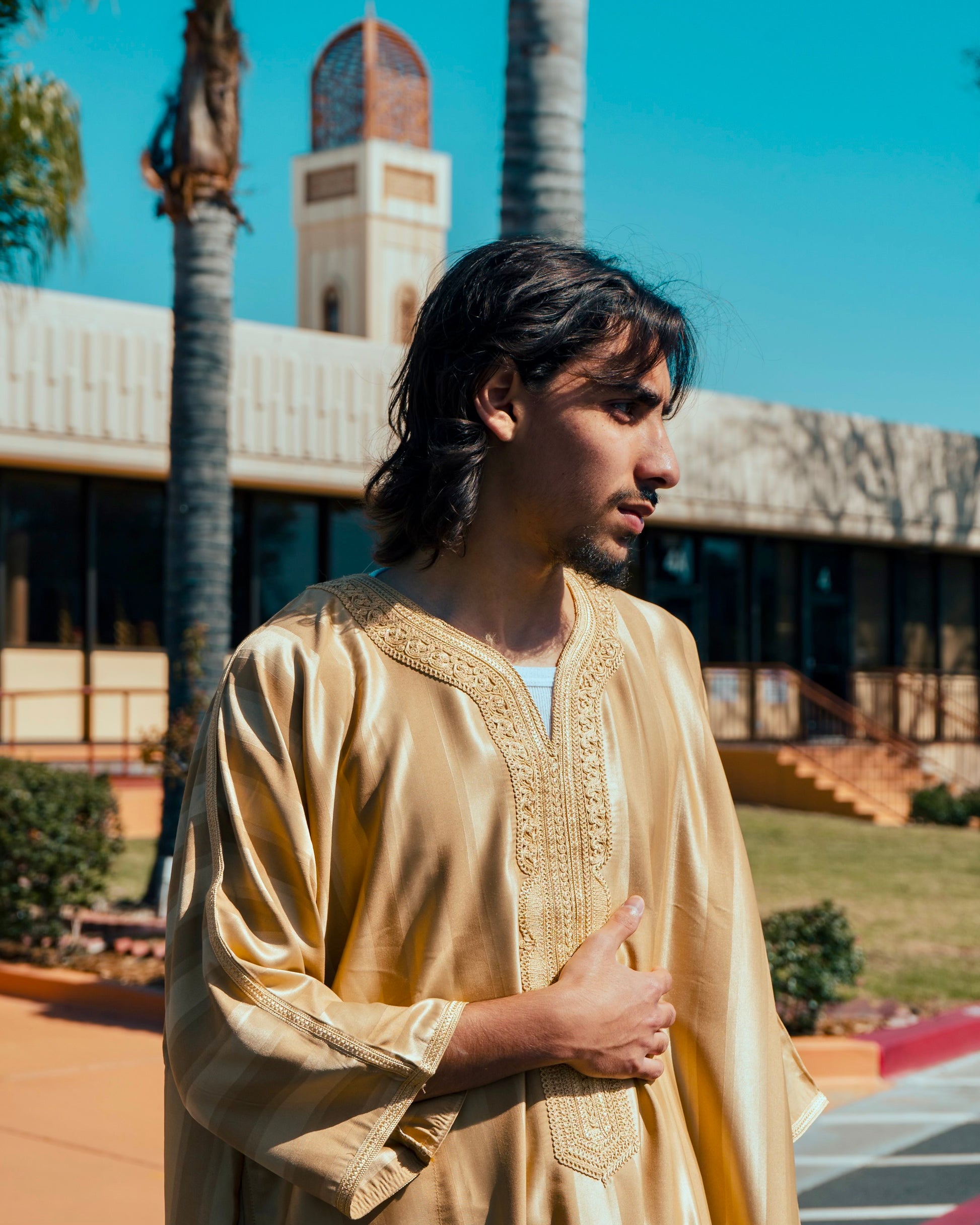 Fit for year-round use, this breathable royal gold "qandoura" provides its wearer with comfort and modesty.